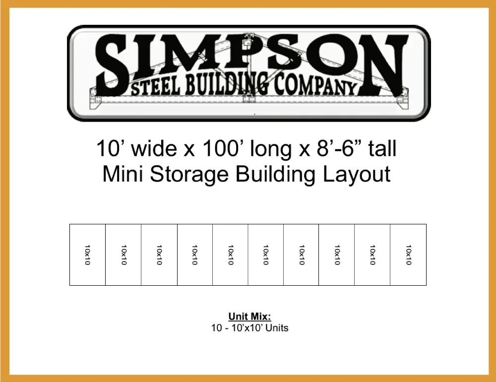 10x100x8.5 Steel Mini Storage Building Kit