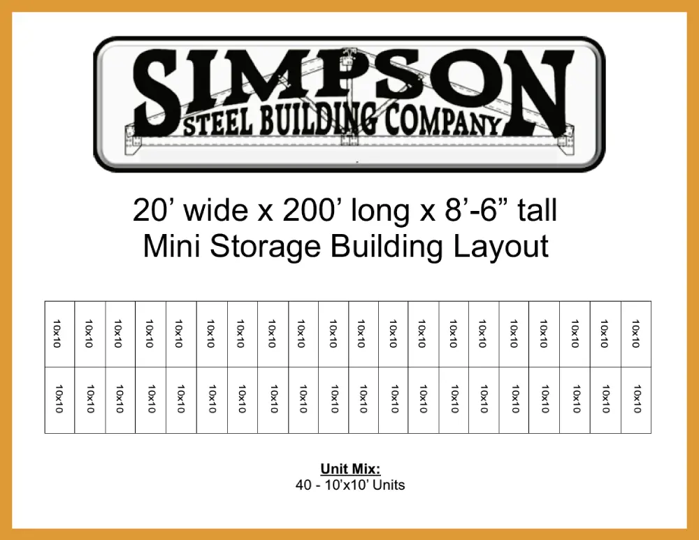 All Simpson Steel Building Company kits come complete with an erection manual, easy to read drawings, and Anchor Bolt Plans. (40) 9×7 framed door openings included.
