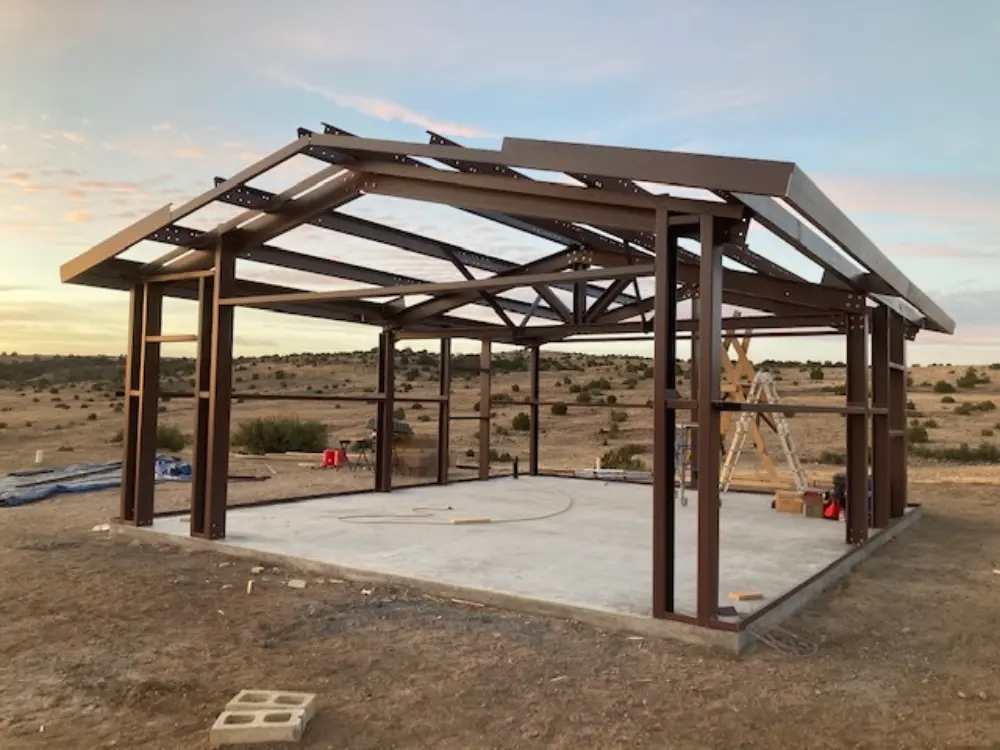 Your choice of color for the roof, wall, and trim from Color Chart. All structural members are high strength 57,000 psi steel, cut to length, and pre-punched for easy assembly with either 1/2″ bolts or self-drilling screws. Roof and Wall panels are 26ga. 80,000 psi painted galvanized steel.