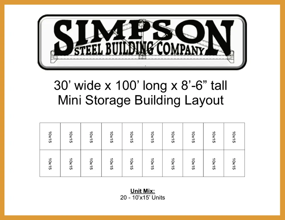 30x100x8.5 Steel Mini Storage Building Kit