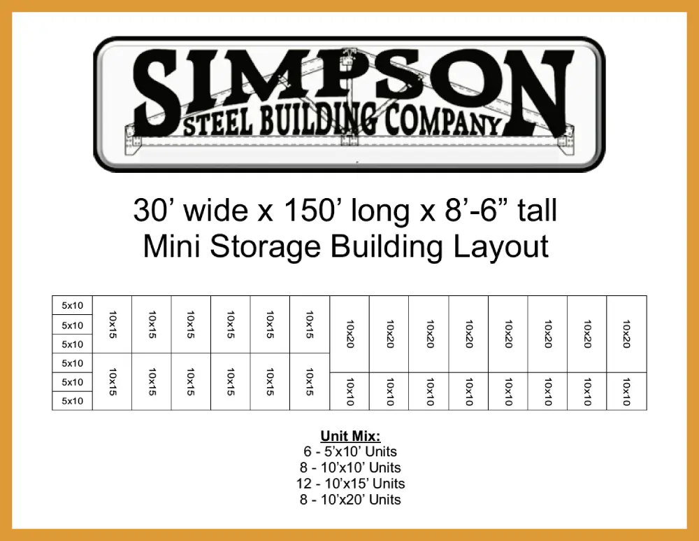 All Simpson Steel Building Company kits come complete with an erection manual, easy to read drawings, and Anchor Bolt Plans. (28) 9×7 framed door openings and (6) 4×7 framed openings included. Roll-up Doors are NOT INCLUDED in pricing but can be added for an additional cost.