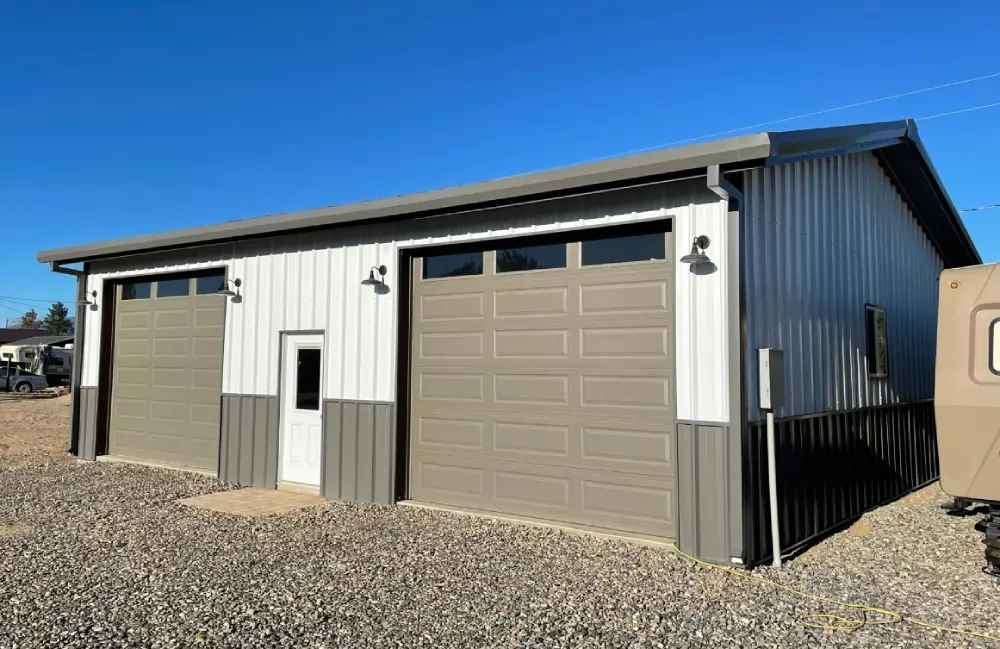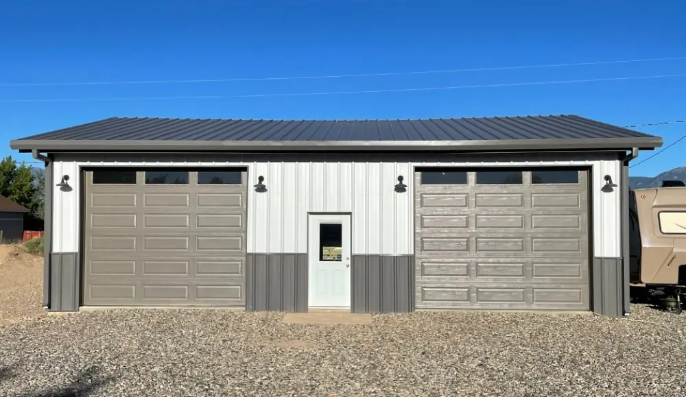 All structural members are high strength 57,000 psi steel, cut to length, and pre-punched for easy assembly with either 1/2″ bolts or self-drilling screws. Roof and Wall panels are 26ga. 80,000 psi painted galvanized steel. All roof and wall panels are attached with self-drilling fasteners. Panel fasteners are color matched.